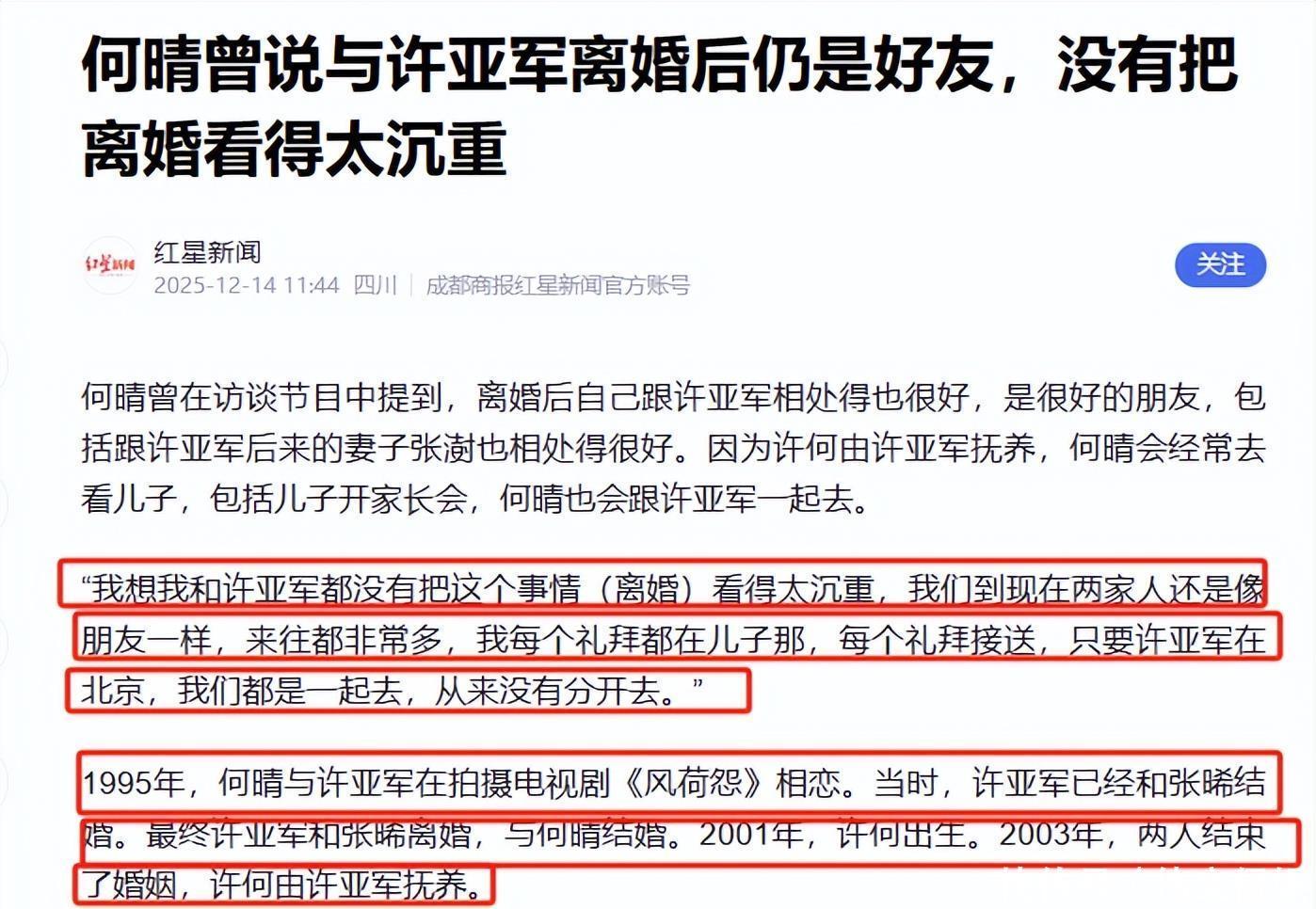 [免责声明]文章的时间、过程、图片均来自于网络,文章旨在传播正能量,均无低俗等不良引导,请观众勿对号入座,并上升到人身攻击等方面。观众理性看待本事件,切勿留下主观臆断的恶意评论,互联网不是法外之地。本文如若真实性存在争议、事件版权或图片侵权问题,请及时联系作者,我们将予以删除。信息来源:百度百科:许亚洲、刘威、何晴百度百科何晴走进《大宅门》演绎传奇女子杨九红.新浪娱乐.2011-11-25廖京生低调现身何晴追悼会,曾多次辟谣与何晴不是夫妻关系;何晴也称对方只是“合作过的优秀演员”.红星新闻.2025-12-15陶慧敏发文悼念何晴:她对我的恩情我一直铭记于心.搜狐娱乐 [2025-12-15]何晴告别仪式在京举行,六小龄童、唐国强送来挽联,儿子深情追忆:妈妈喜欢雪,北京初雪是为她而下.腾讯新闻 [2025-12-15]