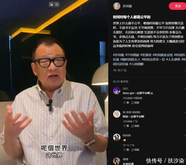 据此前报道,76岁的“Benz哥”许绍雄被曝病危入院,黎芷珊、苗侨伟戚美珍夫妇、TVB监制文伟鸿及林志华等人前往医院,众人神情严肃。记者搜索到,许绍雄10月10日还活跃在社交平台。(此前报道:76岁“欢喜哥”许绍雄病危入院,多名圈内好友赴医院探望,佘诗曼落泪取消行程)